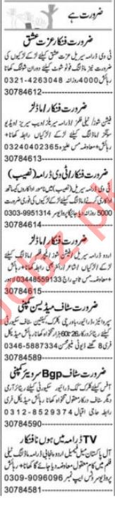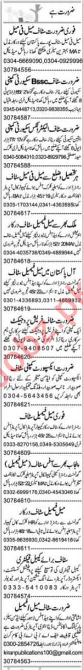 Sales Officer, Secretary, Personal Secretary, Peon, Lady Accountant, Graphic Designer, Public Relation Officer, PRO, Assistant, Call Representative, Lady Office Assistant, Front Desk Officer, Cashier, Customer Service Representative, CSR, Lady Receptionist, Security Guard needs in well established companies.