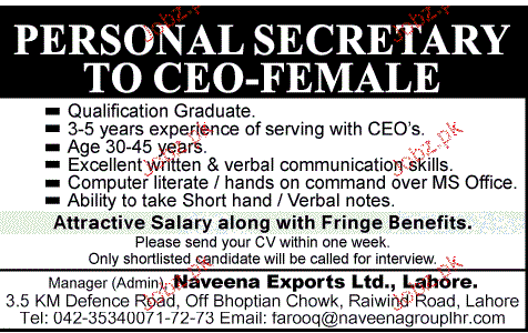 Latest Private Company Admin Clerical Posts Lahore 2025