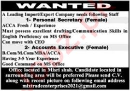Import Export Company jobs advertisement dated about 25 June 2023 in daily Jang Newspaper invites application for the vacant post of personal secretary and accounts executive in Lahore, lahore Punjab Pakistan. Candidates with Bachelor and Master etc. educational background will be preferred.
