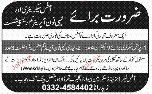 Latest Private Company Telephone Operator Posts Lahore 2025