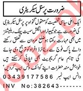 Apply as per details in job advertisement. Login to view further details of how to apply via https://www.jobz.pk online.