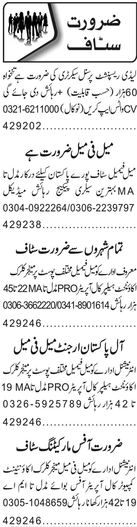 Private Company jobs advertisement dated about 19 January 2023 in daily Roznama 92 News Newspaper invites application for the vacant post of male staff, helper, clerk, accountant, manager, computer operator, lady receptionist, call operatoer, marketing staff, pro, public relations officer, office staff, female staff and personal secretary in Multan, multan Punjab Pakistan. Candidates with Bachelor, Master, Matric, Intermediate and Middle etc. educational background will be preferred.