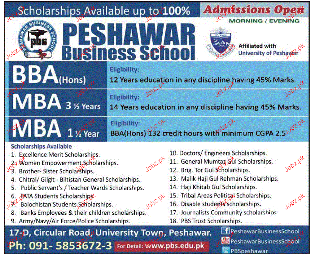 Peshawar Business School Admission in BBA and MBA in Peshawar. Read newspaper ad for exact details.