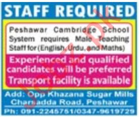 Latest Peshawar Cambridge School System Teaching Posts Peshawar 2025