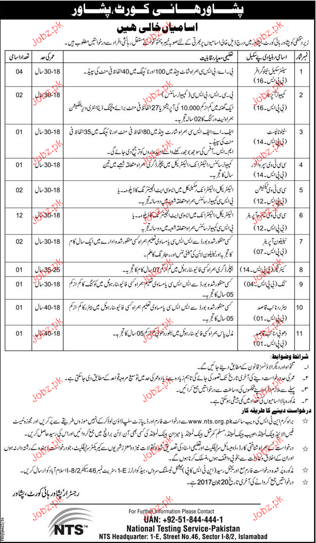 Peshawar High Court Clerical Staff Recruitment NTS Jobs