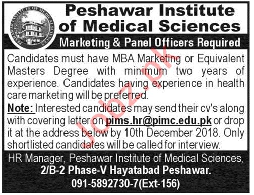 Latest Peshawar Institute of Medical Sciences Marketing Posts Peshawar 2025