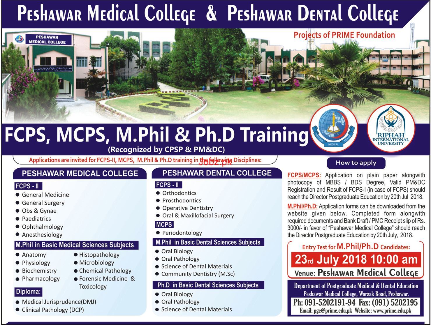 Peshawar Medical College & Peshawar Dental College Admission in FCPS, MCPS, Mphill and Phd Training Recognized by CPSP & PM & DC in Peshawar. Admission Open for Both Male / Female Students. Read newspaper ad for exact details.