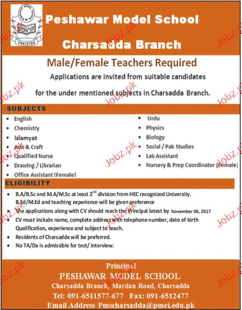 Latest Peshawar Model School Teaching Posts Charsadda 2025
