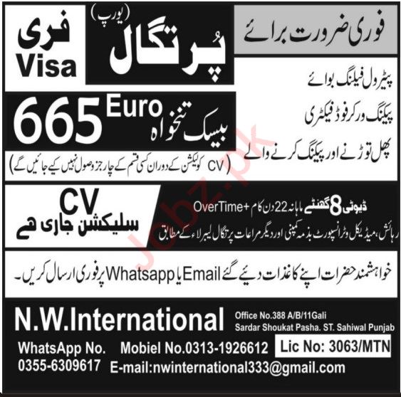 NW international jobs advertisement dated about 5 February 2023 in daily Shamal Newspaper invites application for the vacant post of packing worker and petrol filling boy in Lisbon, lisbon Portugal. Persons with Intermediate, Primary, Middle and Matric etc. education can apply.