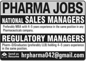 Pharma Company invites applications for job positions advertised in daily Jang dated 13 February 2022 for following vacancies in Lahore Punjab Pakistan.