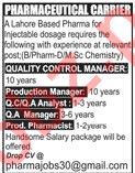 Vacancies in Pharmaceutical Company Advertisement January 2020