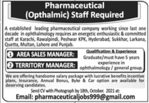 Vacancies in Pharmaceutical Company Advertisement October 2021