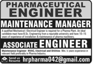 Pharmaceutical Company jobs advertisement dated about 13 February 2022 in daily Jang Newspaper invites application for the vacant post of Associate Engineer and Maintenance Manager in Lahore Punjab Pakistan. Bachelor, Intermediate and DAE etc. educational qualification will be preferred.