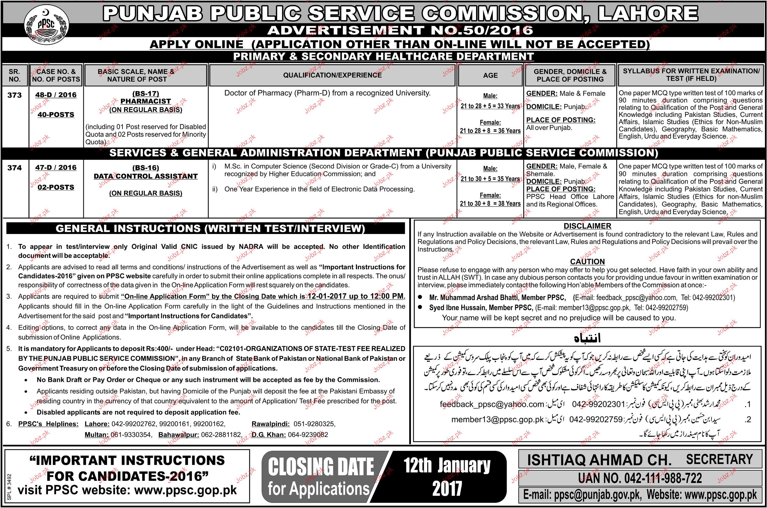 Pharmacist And Data Control Assistants Job In PPSC