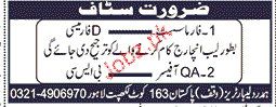 Pharmacists and Lab Incharge Job Opportunity