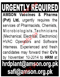 Pharmacists, Chemists, Microbiologists Job Opportunity