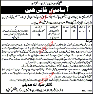 Latest Government Medical Posts Mandi Bahauddin 2025