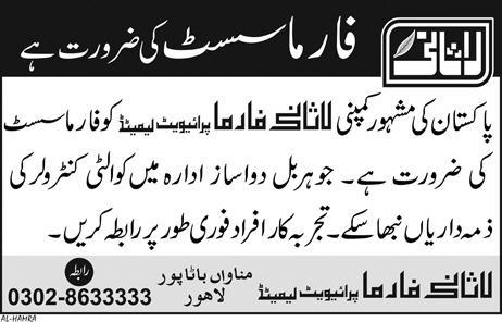 Pharmacists Job In Lasani Pharma Private Limited