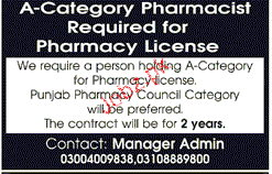 Pharmacists are required in lahore.