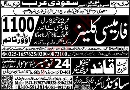 Quaid Technical Training Center Riyadh, riyadh Saudi Arabia invites applications from eligible candidates for the post of pharmacy cleaner as per advertisement of November 23, 2025 published in daily Express Newspaper. Matric and Intermediate etc. educational qualification will be preferred.