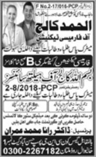 Admissions in Al Hamd College of Pharmacy Technician 2024 for Pharmacy Technician has been announced. Eligible students who qualify as per admission criteria in Al Hamd College of Pharmacy Technician Multan Punjab Pakistan can apply in Medical College for academic year 2024. Eligible students for fulfilling criteria for admissions in Diploma can enroll as per Private admission policy 2024 till closing date 28 October 2024. Read newspaper ad for exact details.