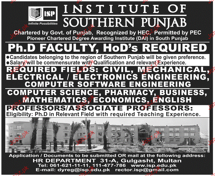 Phd Faculty And HoDs Job In Institute Of Southern Punjab