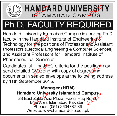 Apply as per details in job advertisement. Login to view further details of how to apply via https://www.jobz.pk online.