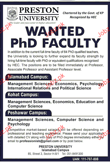 Apply as per details in job advertisement. Login to view further details of how to apply via https://www.jobz.pk online.