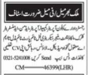 Apply as per details in job advertisement. Login to view further details of how to apply via https://www.jobz.pk online.