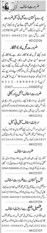 Private invites applications for job positions advertised in daily Dunya dated 8 December 2023 for following vacancies in Karachi, karachi Sindh Pakistan.