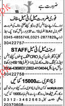 Apply as per details in job advertisement. Login to view further details of how to apply via https://www.jobz.pk online.