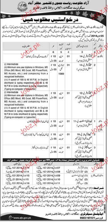 Latest Government Department Admin Clerical Posts Muzaffarabad 2025