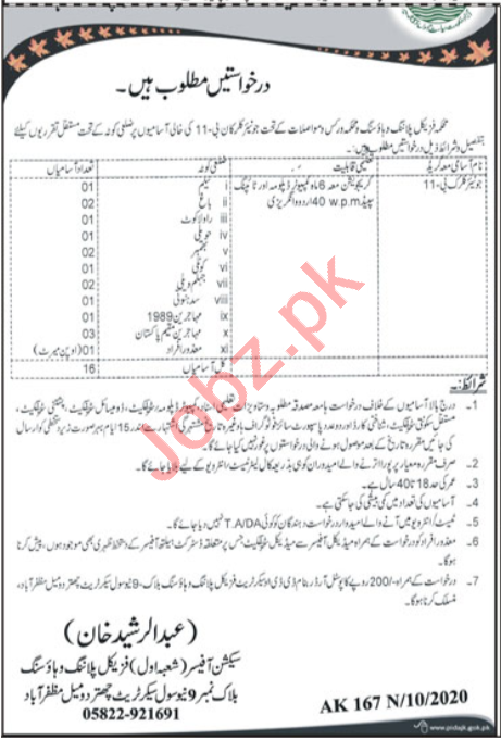 Latest Communication and Works Department Admin Clerical Posts Muzaffarabad 2025