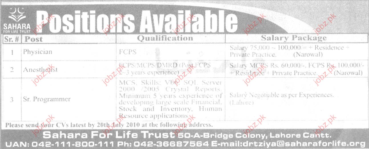 Physician, Anesthetist, Sr. Programmer Job Opportunity