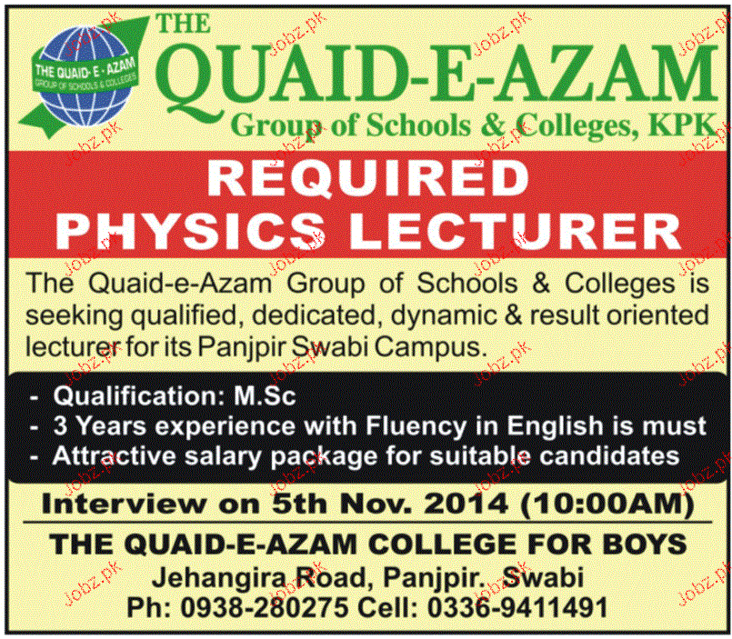 Physics Lecturers Job In Quaid E Azam Group Of Colleges