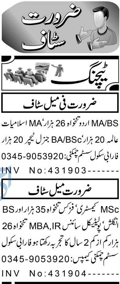 Latest Farabi School System Teaching Posts Peshawar 2025