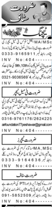 Latest Private School Education Posts Peshawar 2025