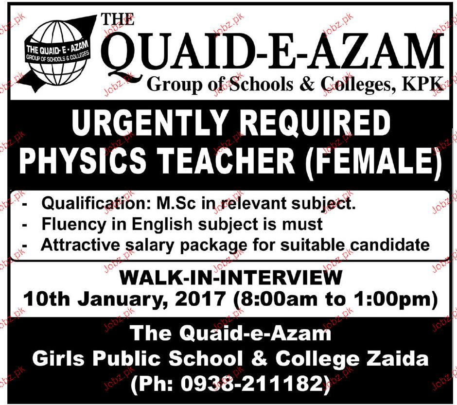 Physics Teachers Job In Quaid E Azam Group Of Colleges