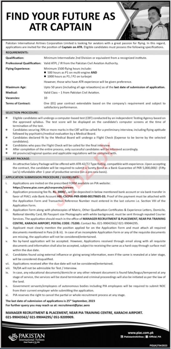 Vacancies in Pakistan International Airlines PIA Advertisement September 2023