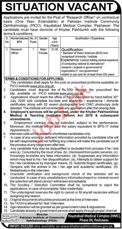 Latest Pakistan Institute of Community Ophthalmology Research Posts Peshawar 2025