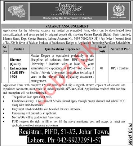 PIFD Institute Lahore Jobs 2020 For Director QEC