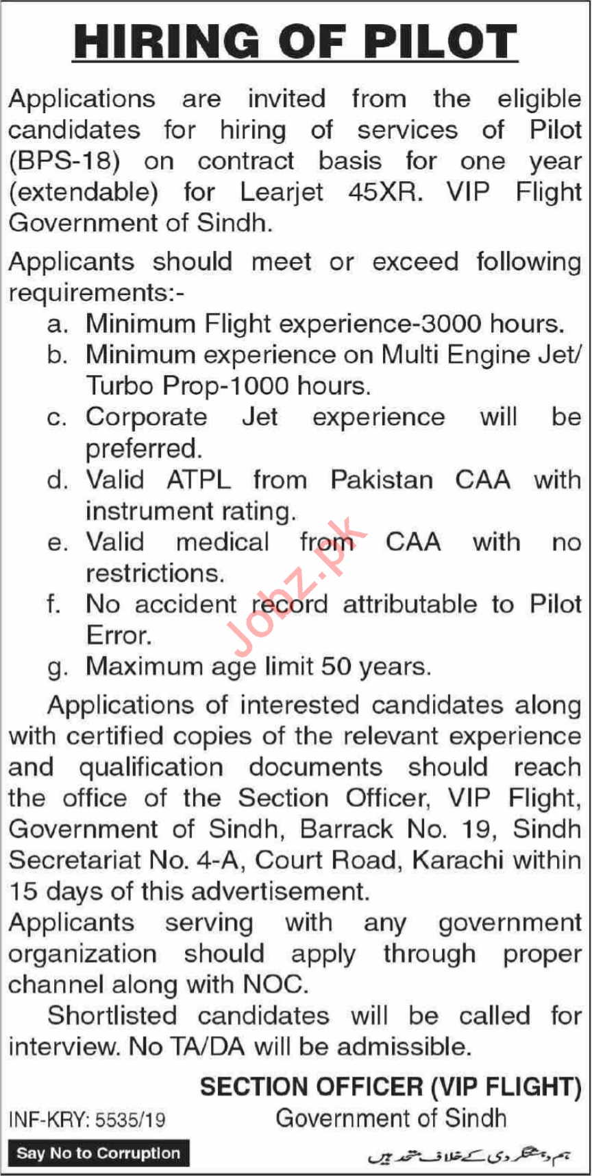 Apply as per details in job advertisement. Login to view further details of how to apply via https://www.jobz.pk online.