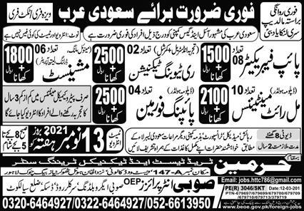 Vacancies in Harmain Trade Test & Technical Training Center Advertisement November 2021
