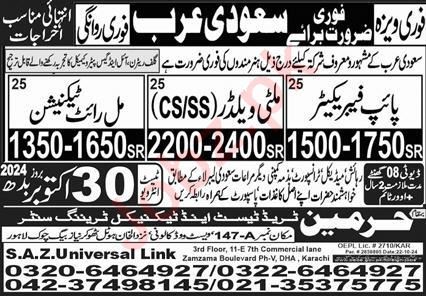 SAZ Universal Link invites applications for job positions advertised in daily Express dated 28 October 2024 for following vacancies in Saudi Arabia, saudi arabia Saudi Arabia.