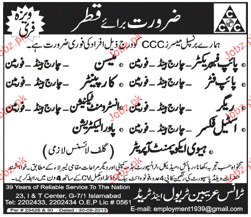 Pipe Fabricators, Mason, Charge Hans, Rigors Jobs In Qatar