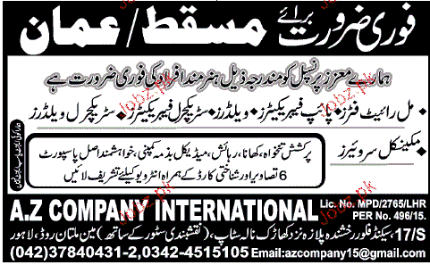 Pipe Fabricators, Structural Fabricators Job Opportunity