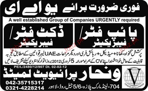 Pipe Fitter And Duckt Fabricator Job Opportunity
