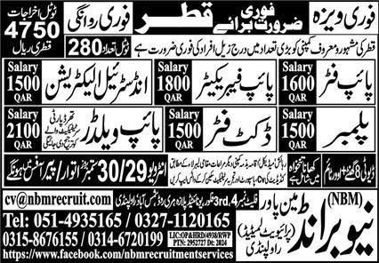 New Brand Manpower invites applications for job positions advertised in daily Express dated 29 September 2024 for following vacancies in Qatar, qatar Qatar.