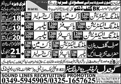 Gondal Trade Test & Training Center is looking for candidates for following posts as per job advertisement published in daily Express Newspaper of January 18, 2024 for location Riyadh, jeddah Saudi Arabia: