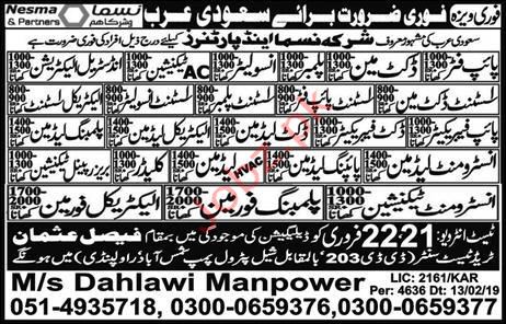 A well reputed and well established company is looking for pipe fitter, Duct Man, Plumber, Insulator, AC Technician, Industrial Electrician, Assistant Duct Man, Assistant Pipe fitter, Assistant Insulator, Electrical Assistant, Pipe Fabricator, Duct Fabricator, Electrical Lead Man, Plumbing Lead Man, Instrument Lead Man, Breeze Panel Technician, Plumbing Foreman, Electrical Foreman in Saudi Arabia.